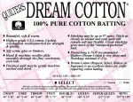 Quilters Dream Cotton, Twin 93" x 72" Select Natural, starts with the finest USA cotton and is carded, crosslapped and specially needlepunched for strength. No stiff scrim to resist your needle. Select quilt batting is a mid-loft batting for hand quilting, machine quilting and crafts that will accept stitches up to 8" apart.